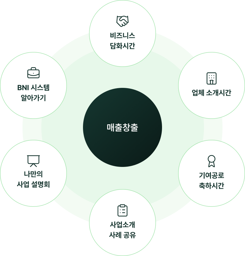 BNI는 멤버들간의 상호교류, 목표달성의 기초가 되는 원리와 원칙상에서 세워졌습니다.